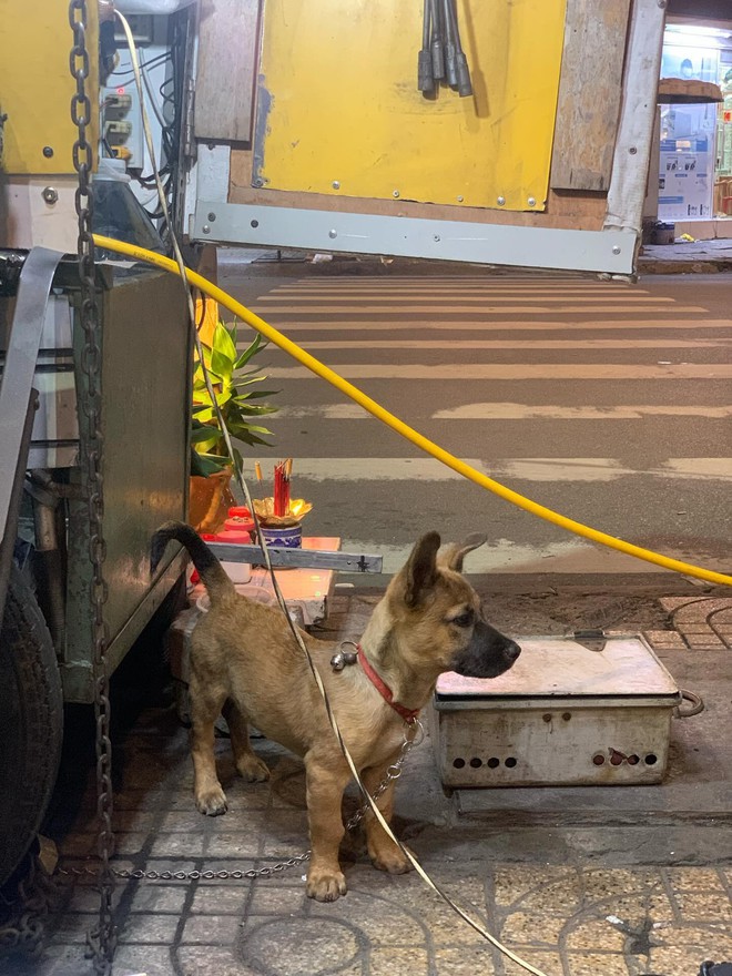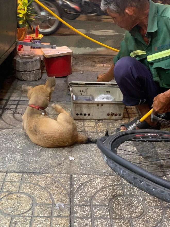 - Chú này dễ thương lắm. Hôm trước đạp xe bị bể bánh không chỗ nào nhận vá may gặp chú nhận vá. Có bé chó nhỏ nhỏ cute nữa.