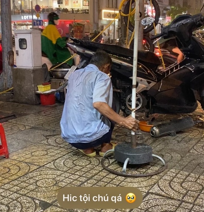 Có thể nhiều lý do khiến chú cố gắng vậy nhưng mà mình vẫn cảm động lắm ấy. Nên là ai có bị hư xe hay bơm xe gì đó khúc Trần Hưng Đạo cắt Nguyễn Tri Phương để lên cây cầu (ngay khúc cua) thì nhớ ghé chú nha" - cô gái kể lại.