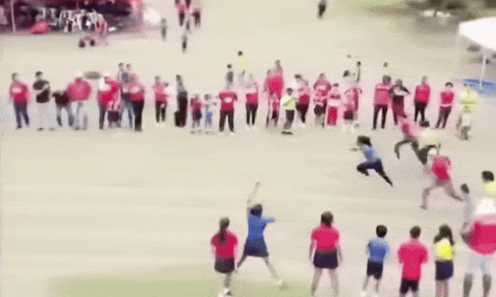 Nhìn sơ qua, ai cũng nghĩ đây chỉ là một phụ huynh nhiệt tình bình thường. Thế nhưng, ngay khi bắt đầu, người phụ nữ này đã thực hiện một cú bứt tốc "vô thực", bỏ xa các đối thủ còn lại cả một đoạn đường dài đến mức... camera cũng không bắt kịp tốc độ của chị.
