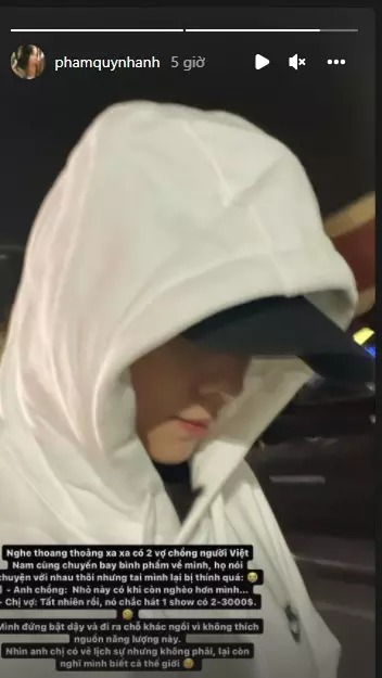 Chia sẻ trên trang cá nhân của mình, nữ ca sĩ cho biết, khi đang trên máy bay, cô nghe được 2 người lạ bàn luận về cát-xê đi diễn của mình.