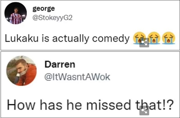 "Lukaku thực sự là một diễn viên hài kịch", một cổ động viên chua chát.