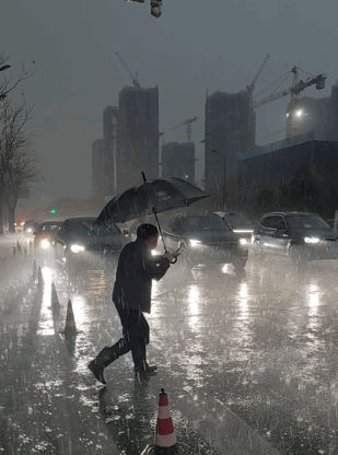 Đó là video ghi lại cảnh trong một ngày mưa lớn hồi tháng 5, một người đàn ông cầm ô đứng trước cổng trường, trực tiếp chỉ huy giao thông tại Trung Quốc.