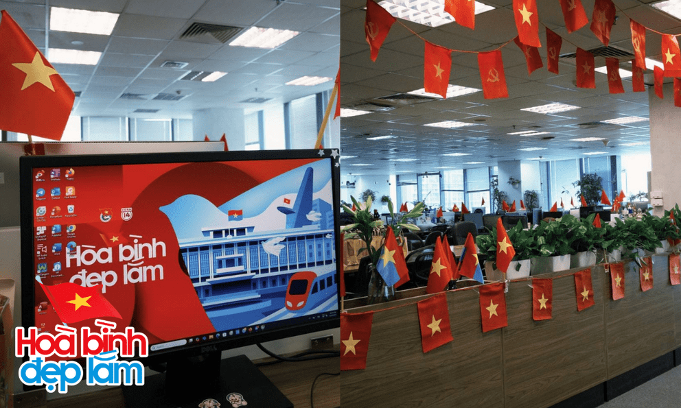 Một trong số đó phải kể đến hoạt động “Phủ đỏ Việt Nam” - Biến mọi nơi bạn đến đều được “thay màu” bằng sắc đỏ của lá Quốc kỳ. Từ trường học, công ty, cơ quan đến phố phường, các quán cafe,... đều cùng nhau trang trí không gian với cờ đỏ sao vàng.