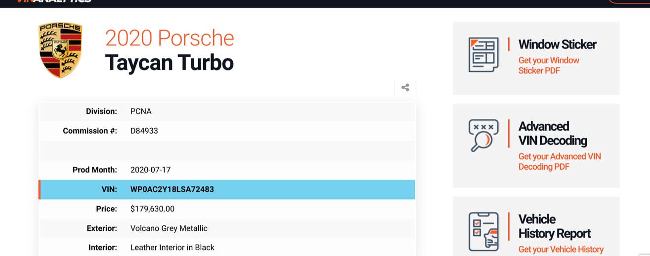 Ví dụ một chiếc Porsche Taycan Turbo, đời 2020, di chuyển chưa tới 24.000 km đang được bán lại với mức giá 89.998 USD trong khi giá mua tại thời điểm mới là 179.630 USD. Tức là sau 4 năm xuất xưởng, chiếc xe này đã "tụt" giá tới 89.632 USD, gần 50% giá trị ban đầu.