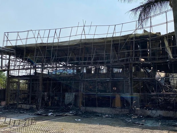 Thời điểm trên, lửa bất ngờ bùng lên tại quán nhậu này. Hai nhân viên đang ngủ trong quán phát hiện vụ việc, tháo chạy ra ngoài hô hoán.