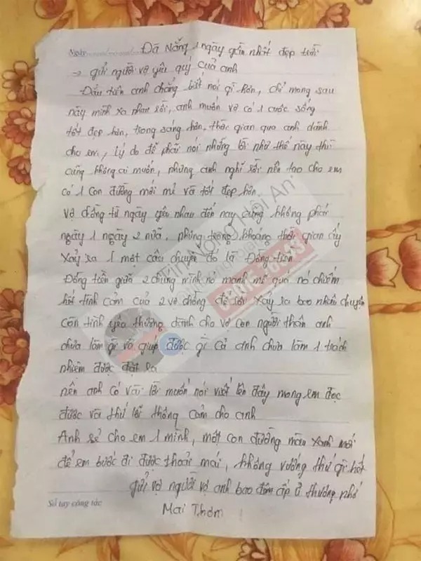 Sau khi sự việc đau lòng xảy ra, trên mạng xã hội lan truyền những bức thư tuyệt mệnh được cho là của người đàn ông để lại cho vợ trước khi ôm con gái 6 tuổi nhảy sông tự tử.