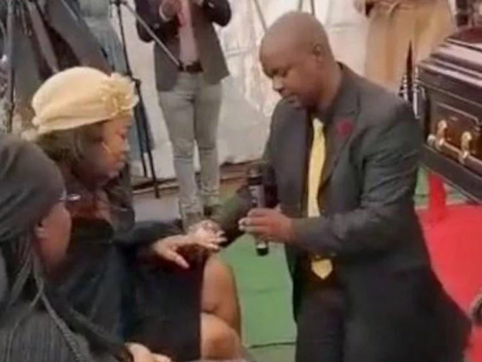 Video do tài khoản M.Mojela chia sẻ tại một đám tang ở tỉnh Limpopo, Nam Phi cho thấy một người đàn ông quỳ gối trước một người phụ nữ với vẻ mặt buồn rầu, gần đó là quan tài người cha quá cố của cô.