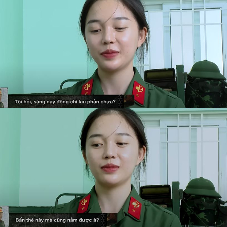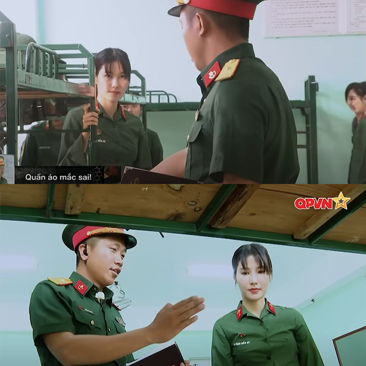 Chia sẻ về tình huống này, Diễm My không khỏi hoang mang: "Mình không nghĩ là môi trường quân đội nghiêm túc đến từng chi tiết nhỏ như vậy. Các đồng chí cấp trên như là có con mắt thứ 3 và giác quan thứ 6 vậy đó. Họ cảm nhận được tụi mình đang nghĩ gì luôn".