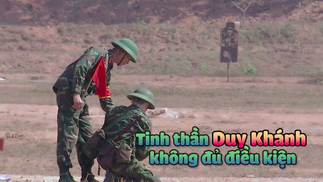 Ban đầu, nam diễn viên nhăn nhó, tỏ vẻ khó chịu ra mặt. Tiếp đến, Duy Khánh thực hiện thử thách một cách khá khó nhọc. Dù phần nhắm bắn của Duy Khánh không quá tốt nhưng anh chàng vẫn được các đồng đội cổ vũ rất nhiều.