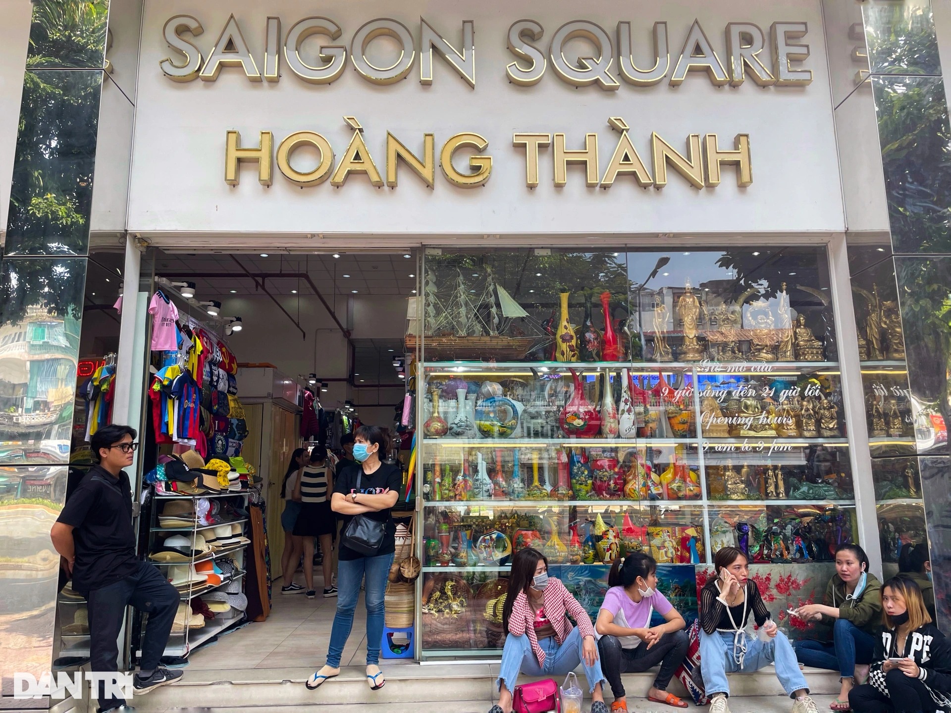Còn các nhân viên tại Saigon Square ngồi túm tụm ở bên ngoài trung tâm hoặc trước các ki ốt để theo dõi tình hình.