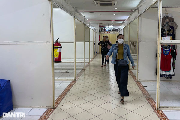 Ở tầng 1, các hàng loạt các ki ốt trống trải, không có người buôn bán. Không ít gian hàng trong tình trạng "trùm mền". Nhiều chủ sạp, nhân viên đóng cửa ki ốt và ngồi trước quầy. Khi có khách hỏi mua hàng, họ đều xua tay và cho biết sạp đang trong quá trình sửa chữa nên tạm thời ngưng bán.