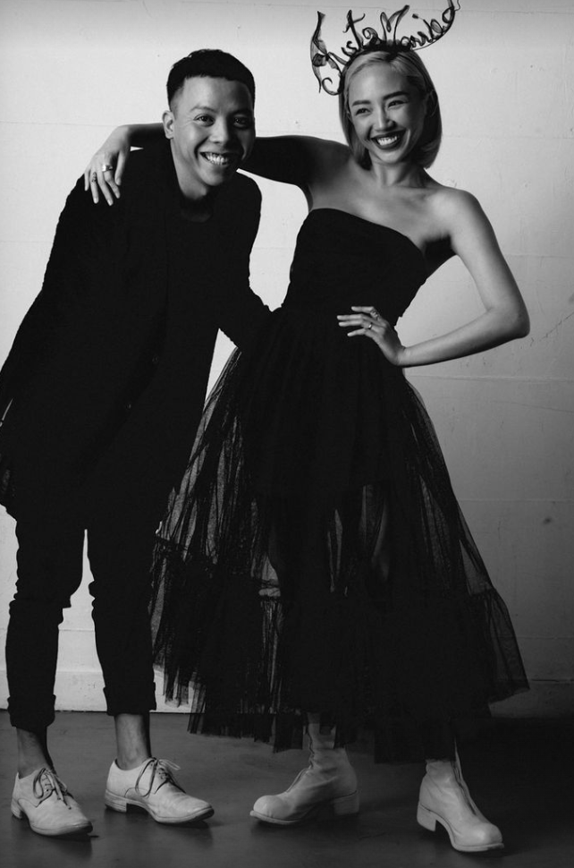 Quân tử nhất ngôn, Tóc Tiên đã chính thức chia sẻ 2 khoảnh khắc đẹp trong bộ ảnh cưới năm nào. Trong ảnh, vợ chồng nữ ca sĩ vô cùng rạng rỡ và nở nụ cười hạnh phúc. Đáng chú ý, ảnh cưới của Tóc Tiên - Hoàng Touliver có điểm phá cách, đi ngược lại quy chuẩn của 1 bộ ảnh cưới thông thường. Thay vì chú rể mặc vest mang giày tây, còn cô dâu diện váy cưới màu trắng thì Tóc Tiên tự tin khoác lên mình chiếc đầm màu đen phối cùng đôi boots trông khá lạ mắt. Trong khi đó, ông xã của cô cũng diện đồ đen "tông xuyệt tông", quần được xắn lên khá cao và giày cũng không phải loại mà chú rể thường mang trong ngày cưới.
