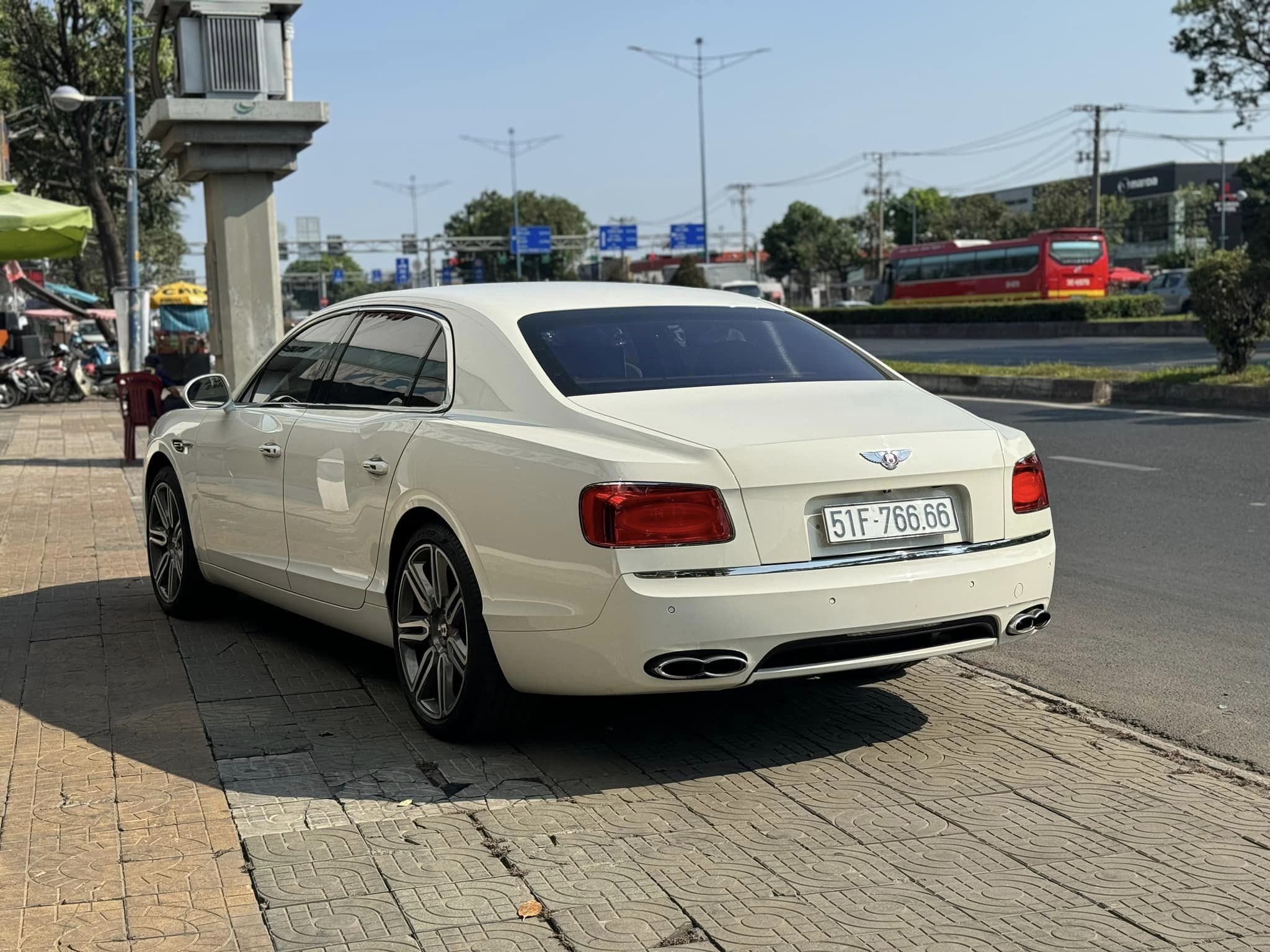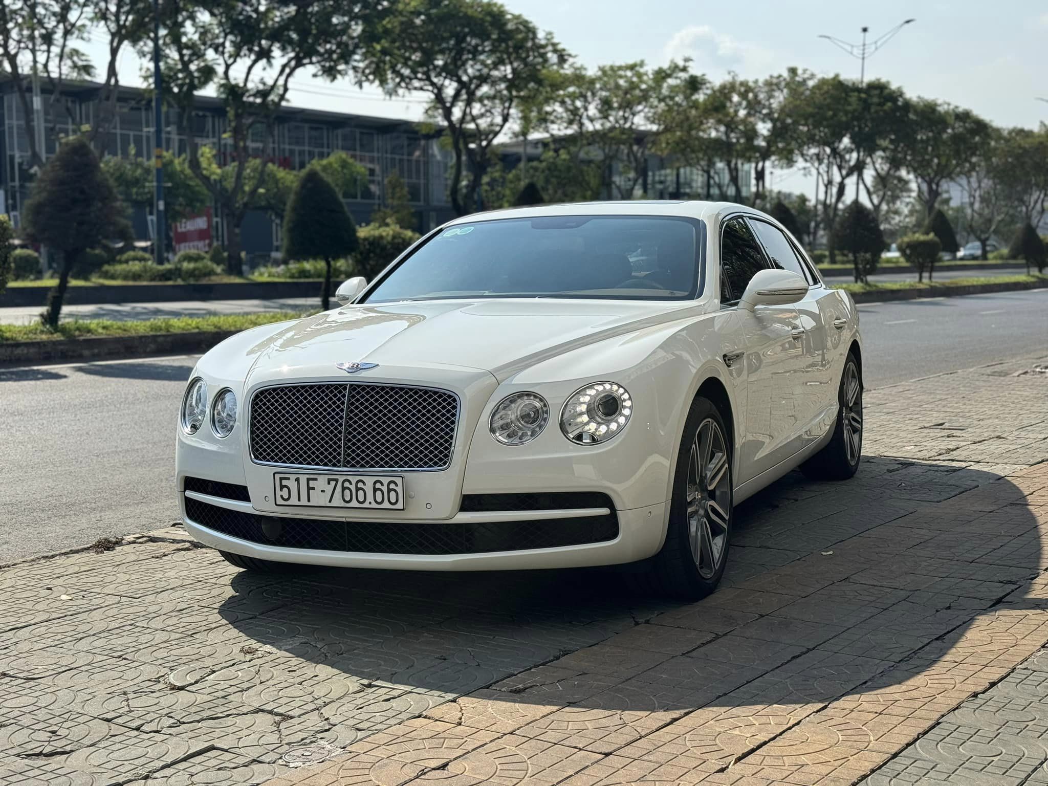 Chiếc Bentley Flying Spur 2015 được rao bán có màu sơn trắng ở ngoại thất. Sau 11 năm xuất xưởng, chất lượng cho cảm quan vẫn tốt, giữ được sự bóng bẩy. Các chi tiết mạ chrome ở lưới tản nhiệt, viền cửa chưa có dấu hiệu bị "xỉn" hoặc ố mờ. Người bán chia sẻ thêm rằng chiếc xe sang này được "chăm sóc, bảo dưỡng cực kỳ kỹ nên tình trạng rất mới".