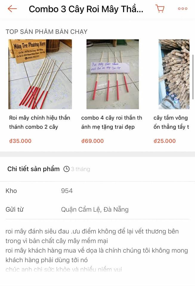 Cá biệt, có người bán còn quảng cáo: "Combo roi mây đánh siêu đau, ưu điểm không để lại vết thương trong".