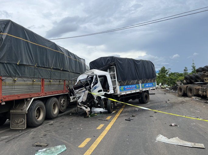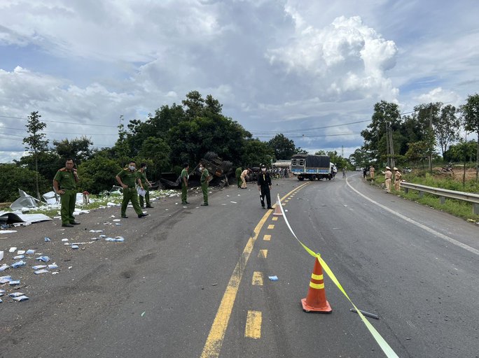 Sau cú tông mạnh, xe đầu kéo tiếp tục tông vào xe tải mang BKS: 48H-011.65 do tài xế Nguyễn Thanh Quang (45 tuổi, ngụ huyện Đắk Song, Đắk Nông) điều khiển lưu thông theo hướng ngược lại.