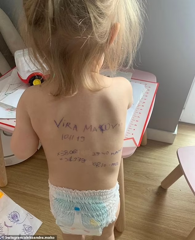 Được biết, chị Sasha đã ghi tên con gái Vira kèm ngày tháng năm sinh lên lưng con bé,cùng với đó là số điện thoại liên lạc của gia đình. Sự âu lo của bà mẹ còn được khẳng định khi chị vẫn không yên tâm sau những gì làm trên lưng con gái mà sau đó còn cẩn thận gài một tấm thiệp với nội dung chi tiết hơn để cài vào áo khoác của Vira.