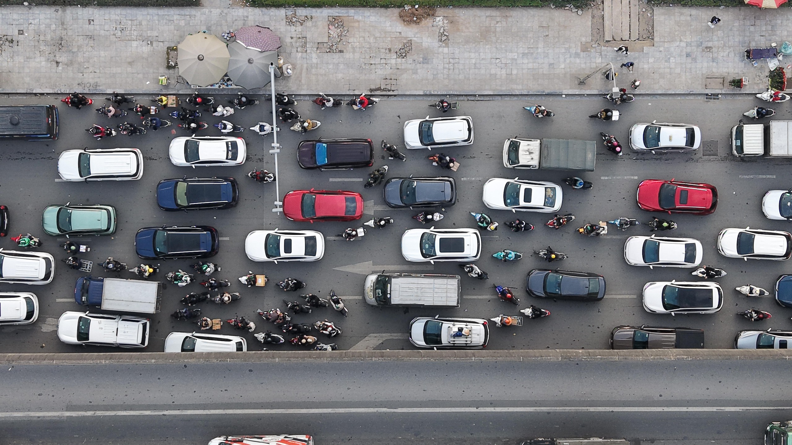 Dòng xe ùn tắc kéo dài nhìn từ trên cao (Ảnh: Như Hoàn)