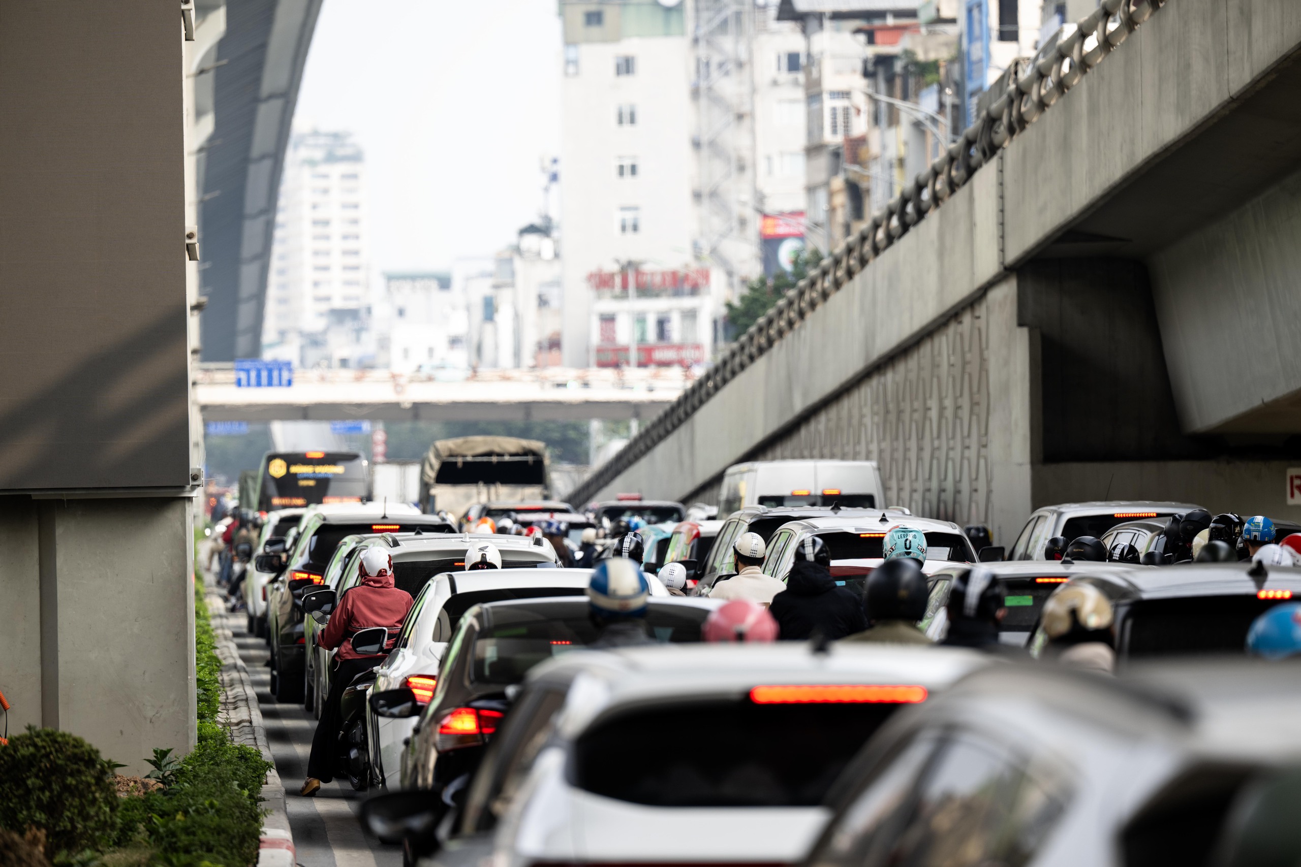 Trên trục đường Ngọc Hồi hướng về Quốc lộ 1A cũ, dòng xe đổ về tăng mạnh. Nhiều gia đình tranh thủ rời Hà Nội sớm để tránh cao điểm trong ngày nghỉ lễ, khiến khu vực này thường xuyên xảy ra ùn ứ cục bộ. Các phương tiện phải di chuyển chậm, nhích từng mét để thoát khỏi nội đô.