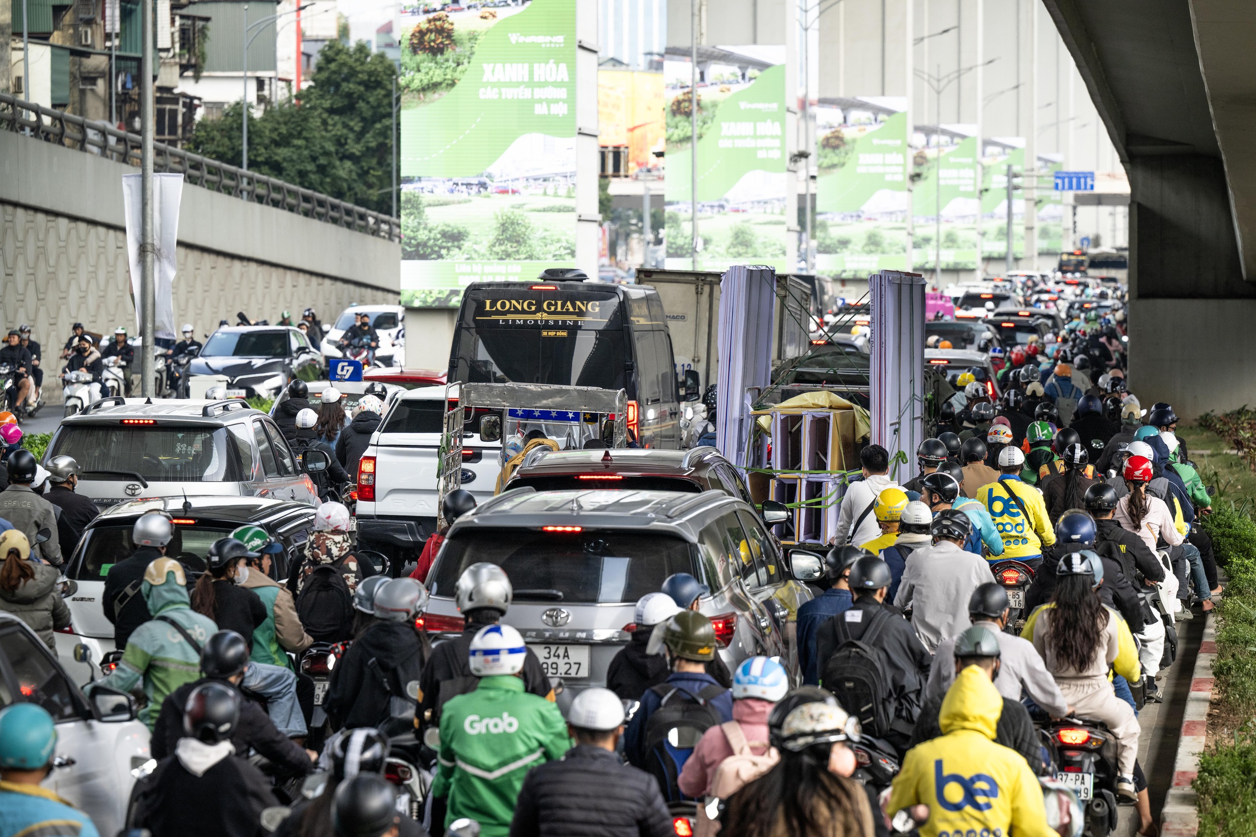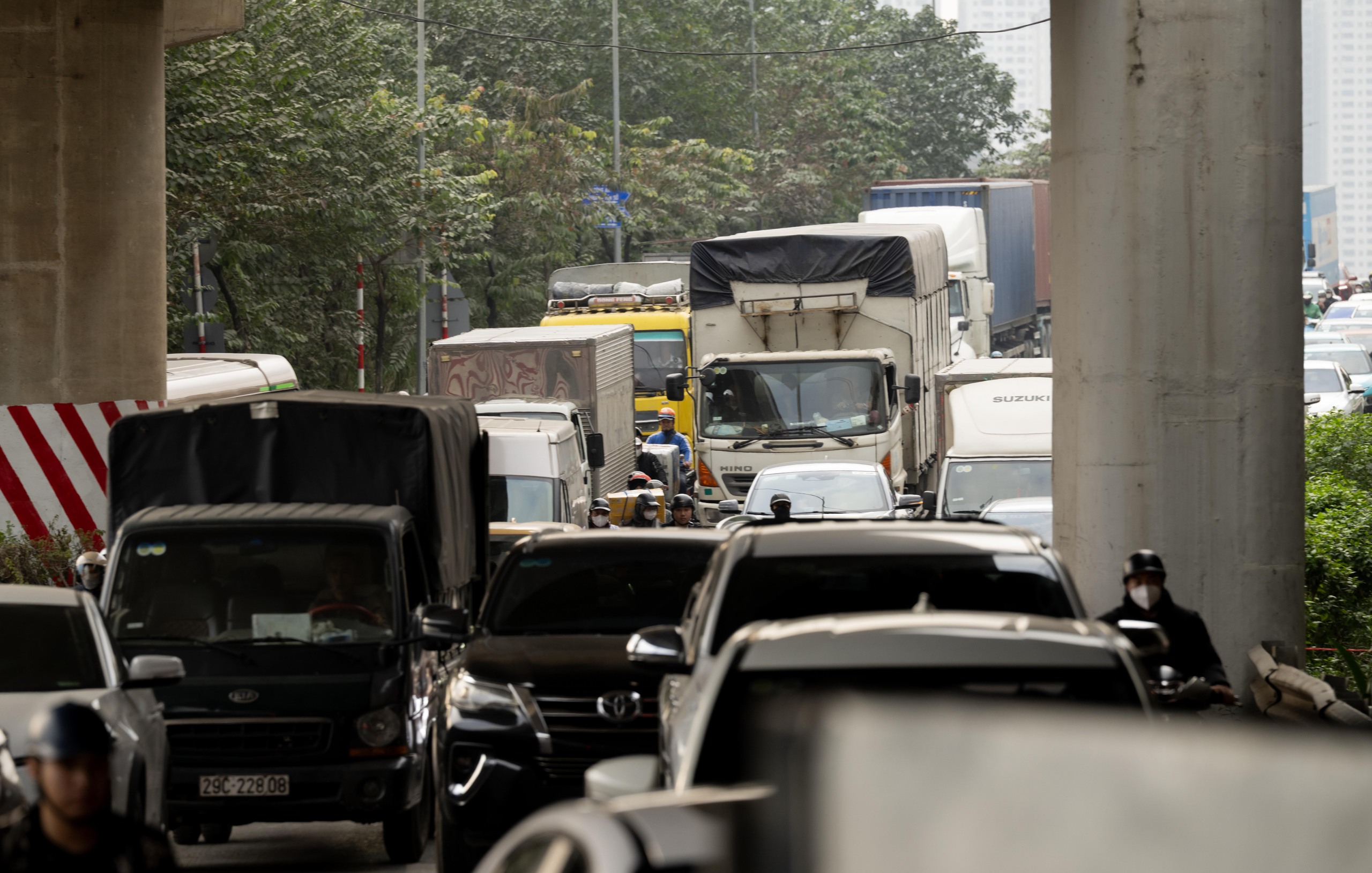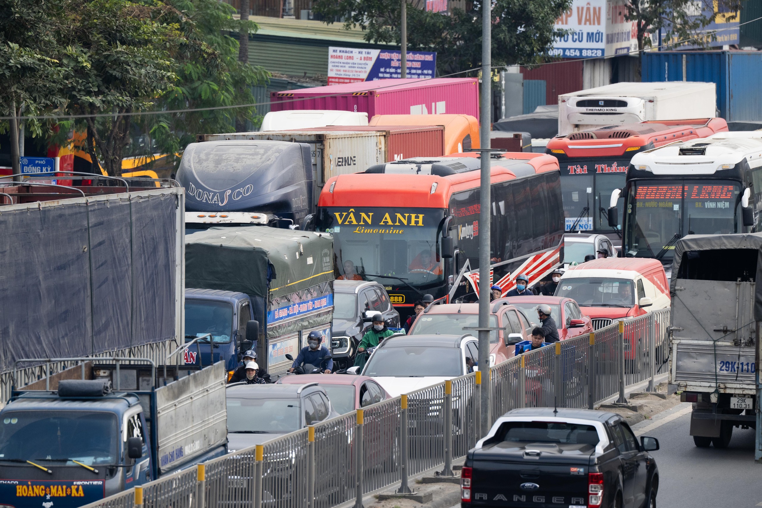 Tại khu vực Pháp Vân - Cầu Giẽ, cửa ngõ quan trọng kết nối Hà Nội với các tỉnh phía Nam, mật độ xe tăng cao từ cuối giờ chiều. Dòng ô tô cá nhân, xe khách và xe tải đan xen khiến giao thông căng thẳng trong nhiều thời điểm. Lực lượng CSGT được bố trí để phân luồng, điều tiết, hạn chế tình trạng ùn tắc kéo dài.