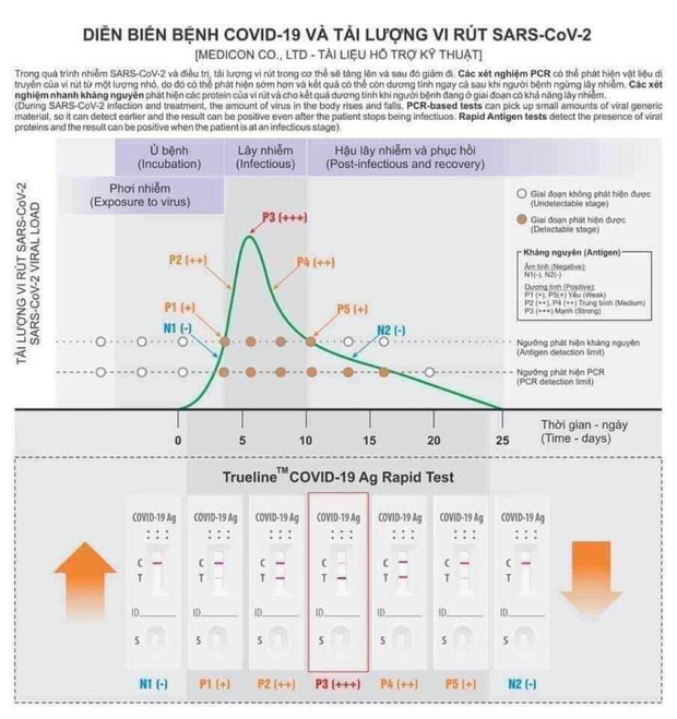- Nếu dương tính ngày (D+1), bạn ước tính ngày P5 như trong sơ đồ, chưa cần test vội. Ngày (P5+1), bạn test, nếu âm tính thì chúc mừng vì bạn sắp khỏi bệnh.