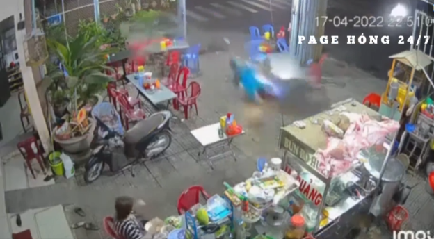 Theo dõi đoạn clip có thể thấy, tại quán mì lúc này có một người phụ nữ đang ngồi ăn. Tuy nhiên bỗng dưng từ đâu, nam thanh niên chạy xe máy với tốc độ cao đã lao thẳng vào quán, đâm đổ sập bàn ghế và cả nồi nước dùng đang đun nóng trên bếp.