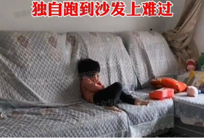 Tủi thân, ngay sau đó bé gái buồn bã rời khỏi phòng và ra ghế sofa ở phòng khách ngồi, bé con bắt đầu khóc. Mặc dù trong lòng ấm ức nhưng bé rất tế nhị, không dám khóc lóc ồn ào mà chỉ dám lặng lẽ rơi nước mắt.