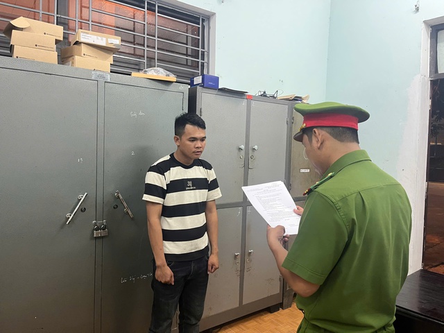 Đại diện cơ quan cảnh sát điều tra đọc lệnh tố tụng đối với Nguyễn Công Hậu (Ảnh: Công an Đà Nẵng).