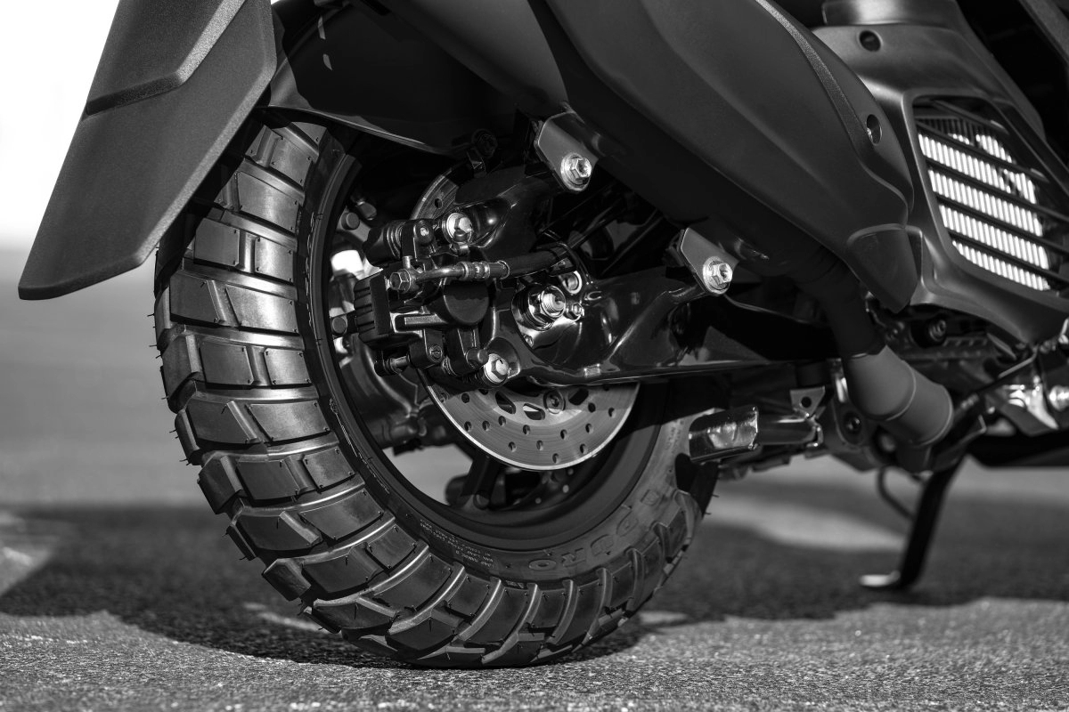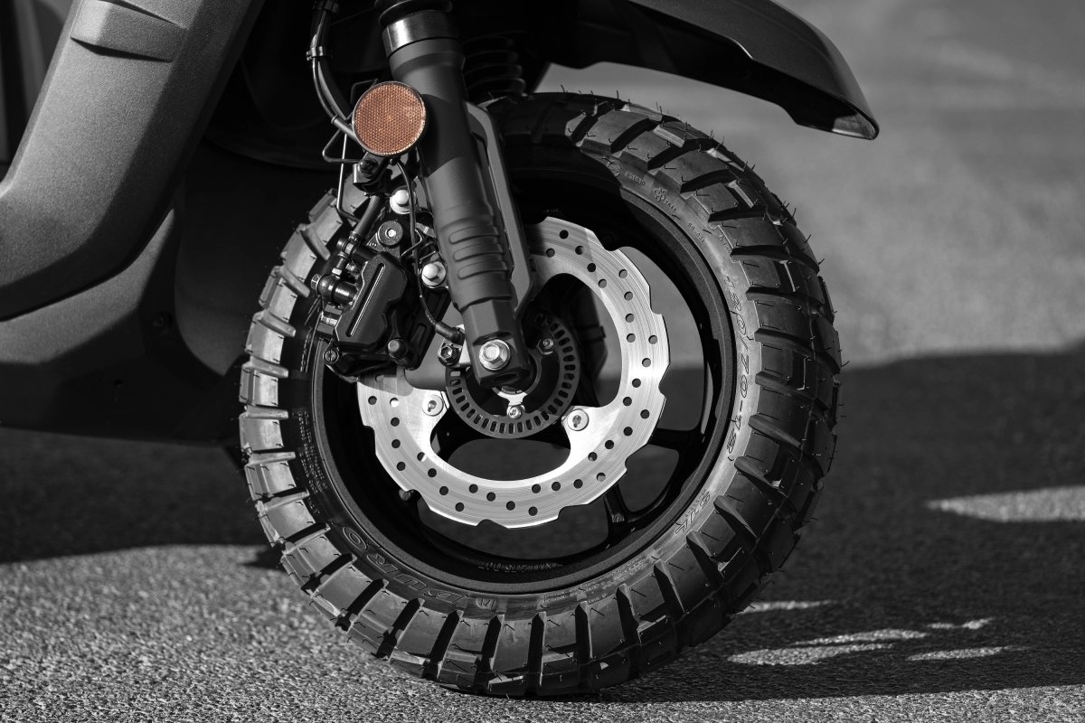 So với bản 2023, Yamaha Zuma 125 2024 thêm 2 tùy chọn màu mới, trong khi kiểu dáng thiết kế về cơ bản giữ nguyên. Mẫu xe gây ấn tượng với cặp đèn đôi bất đối xứng dạng tròn. Ở bản 2024, xe sử dụng đèn LED thay vì bóng halogen như trước đây. Vè chắn bùn đặt cao. Lốp địa hình Dual-Sport tạo nên dáng vẻ cơ bắp, mạnh mẽ, trông như thể một chiếc xe off-road. Mâm đúc 12inch, kết hợp bộ lốp cỡ 120/70 phía trước và 130/70 phía sau. Hệ thống treo gồm bộ phuộc ống lồng phía trước và giảm xóc lò xo đôi phía sau.