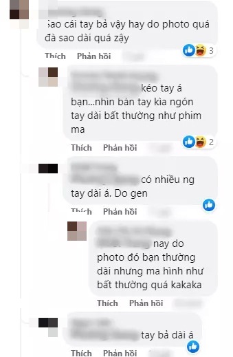 Bên cạnh đó, không ít người phát hiện ra những chi tiết bất thường trong loạt ảnh mới của Thiều Bảo Trâm như cánh tay tong teo, ngón tay dài… Điều này khiến cư dân mạng nghi vấn nữ ca sĩ lạm dụng photoshop quá đà.