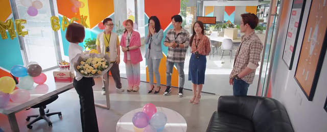 Đến công ty, Trang vui vẻ tận hưởng bữa tiệc chào mừng do các thành viên trong phòng tổ chức. Sau đó cô nhanh chóng tổ chức cuộc họp. Suốt cả ngày làm việc, Trang tỏ ra không quan tâm đến Duy.