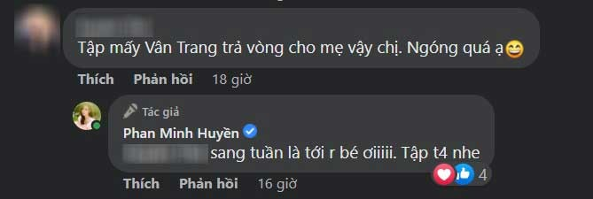 Mới đây, dưới 1 bài đăng trên trang cá nhân, Phan Minh Huyền đã tiết lộ phân cảnh Vân Trang trả lại vòng cho mẹ đẻ sẽ diễn ra ở tập 6 Thương ngày nắng về 2 (tập phim lên sóng vào ngày 13/4).