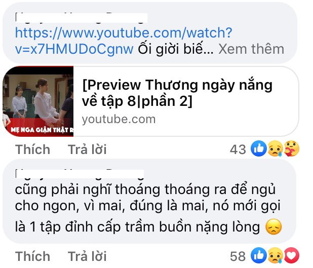 Khán giả vô cùng chờ đợi khoảnh khắc Duy biết sự thật mẹ ruột của Trang chính là mẹ nuôi của Duy. Một thành viên trong ekip làm phim đã tiết lộ tập 8 sẽ là một tập 'đỉnh cấp trầm buồn nặng lòng', hứa hẹn sẽ khiến khán giả khóc hết nước mắt.