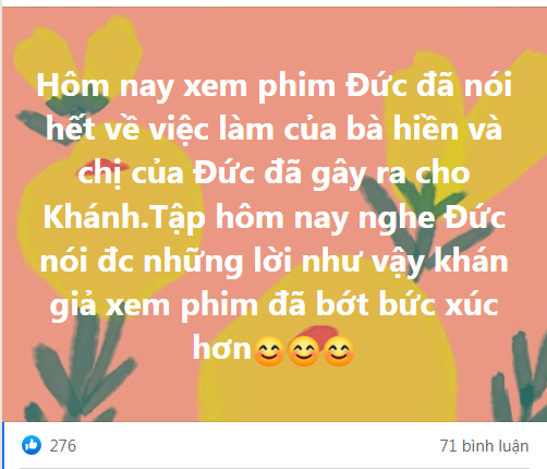 Rõ ràng, Đức thấu hiểu mọi chuyện. Anh biết hết những điều Thương và bà Hiền đã làm với vợ. Nhưng sau cùng, Đức vẫn chọn cách im lặng và ly hôn Khánh vì không muốn vợ phải khổ thêm, càng không muốn bản thân mình trở thành gánh nặng cho vợ.
