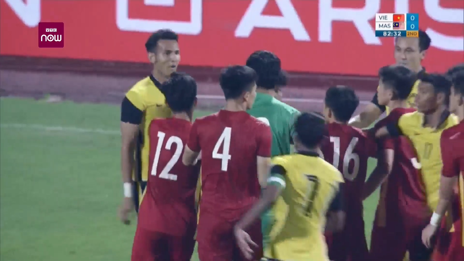 83' Cầu thủ hai đội đã có một màn xô xát trên sân ở khu vực gần vùng cấm địa U23 Việt Nam. Trọng tài chính đã rút ra hai thẻ vàng dành cho thủ môn Văn Toản và tiền đạo Razak.