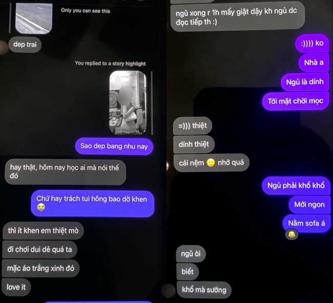 "2 tháng gần đây mình phát hiện những hành động giấu giếm của A. Suốt 1 năm 3 tháng quen nhau mình không hề quản A. làm gì, đi chơi với ai. A. báo đi với bạn mình cũng tin vậy và không kiểm tra điện thoại. Nhưng không hiểu linh tính thế nào chiều 14/3 mình đã mở điện thoại A. xem tin nhắn Instagram. Chỉ cần mở đến nick thứ 2 trong list các nick đang nhắn tin thôi là lòi ra tất cả tin nhắn rủ đi chơi, đón đưa, bạn nữ kia gửi nhiều ảnh sexy khoe cơ thể.