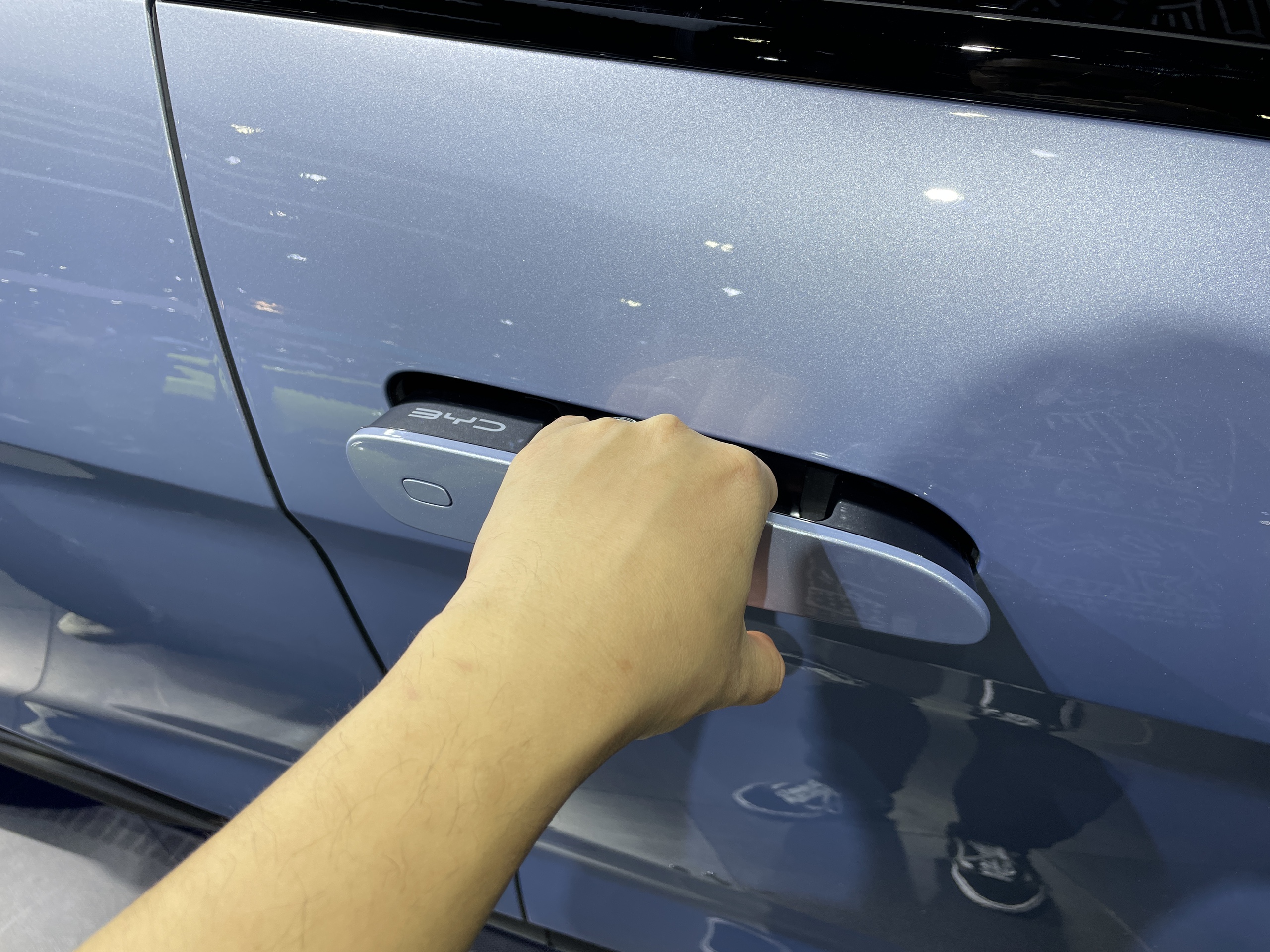 Tay nắm cửa dạng ẩn trên mẫu Y Plus tự bật ra khi mở khoá giống Huracan.