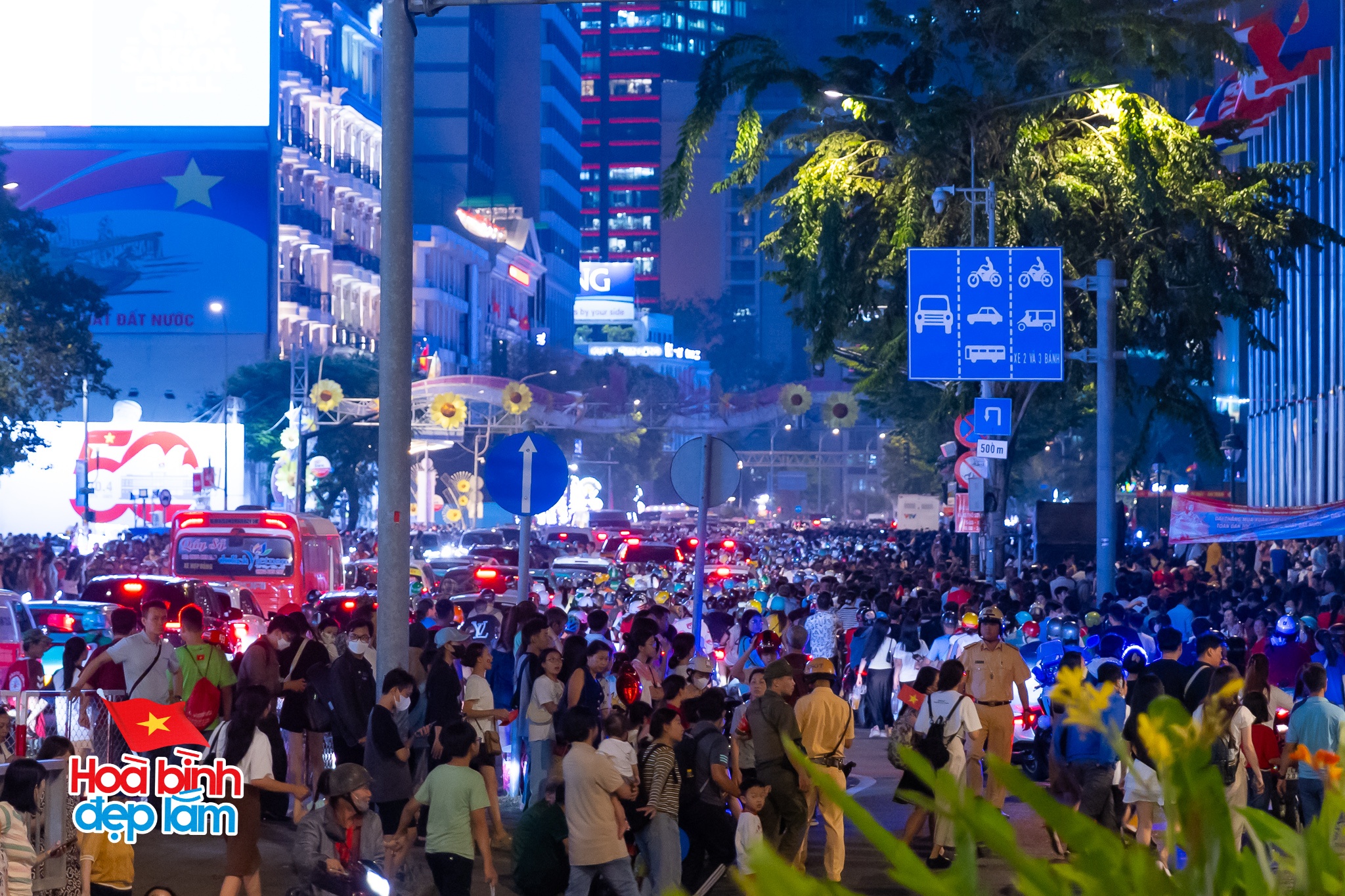 Ngay từ đầu giờ tối, khu vực trung tâm TP.HCM đã chật kín người dân và du khách. Ảnh: Viết Thanh