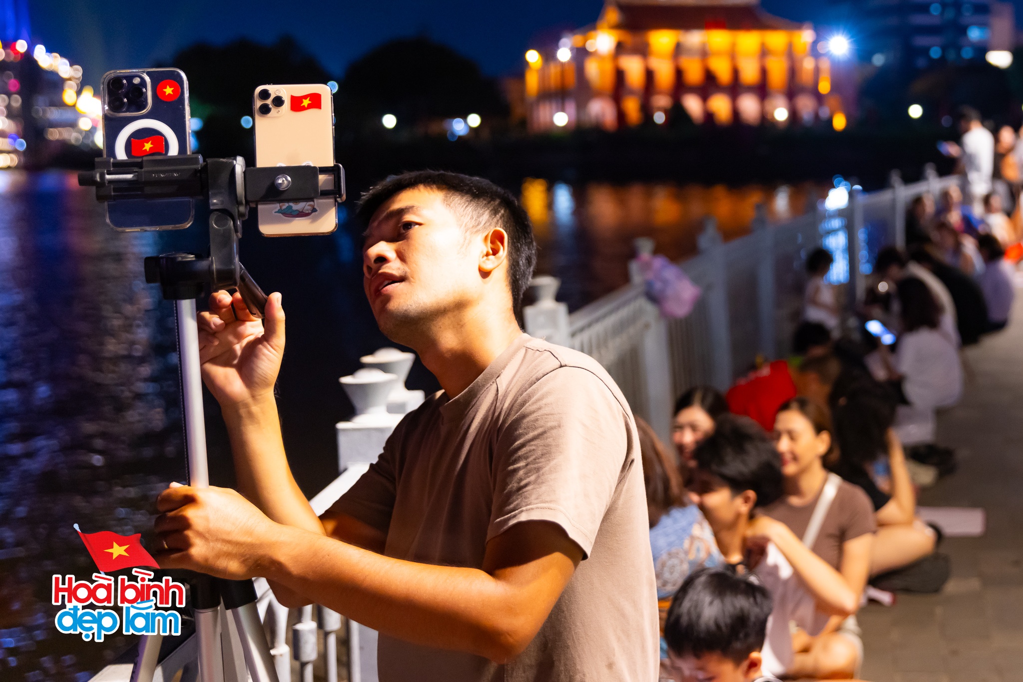 Hàng nghìn người dân hồi hộp dõi theo từng ánh sáng drone vẽ nên trang sử hào hùng, ánh mắt ai cũng ánh lên niềm tự hào về một Việt Nam thống nhất