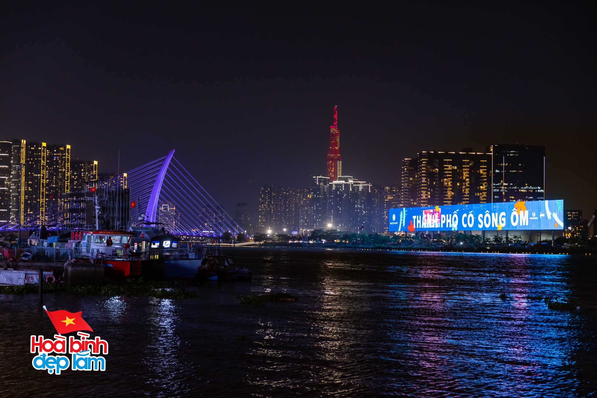 20h30, Người dân tập trung trên cầu Ba Son chờ xem tổng duyệt trình diễn 10.500 drone ở sông Sài Gòn
