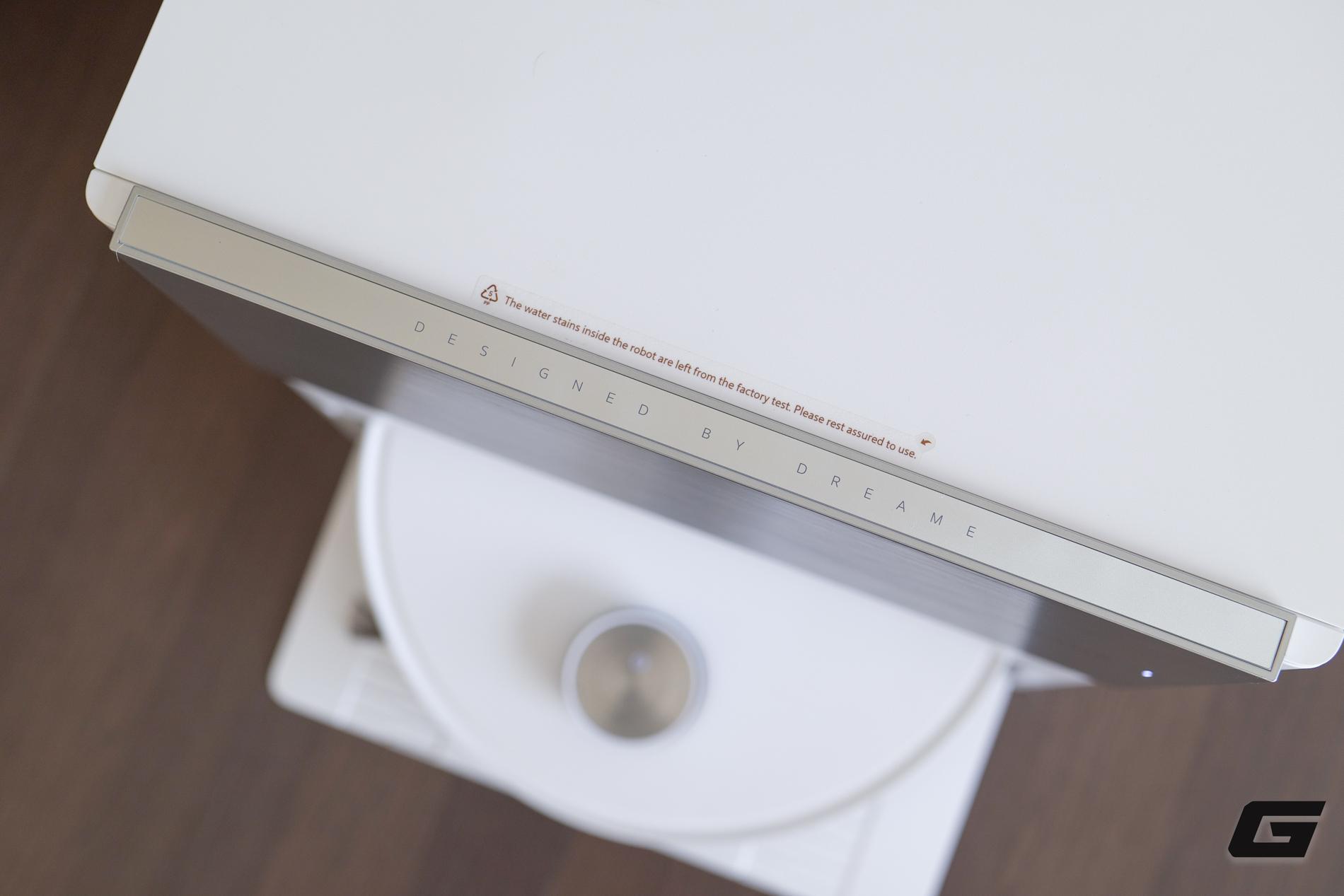 Ngay cạnh logo Dreame được in tối giản là một dải đèn LED báo trạng thái đặt dọc. Chi tiết này được thiết kế rất mảnh, phát ra ánh sáng dịu nhẹ để báo hiệu nguồn điện hoặc trạng thái hoạt động mà không gây chói mắt.