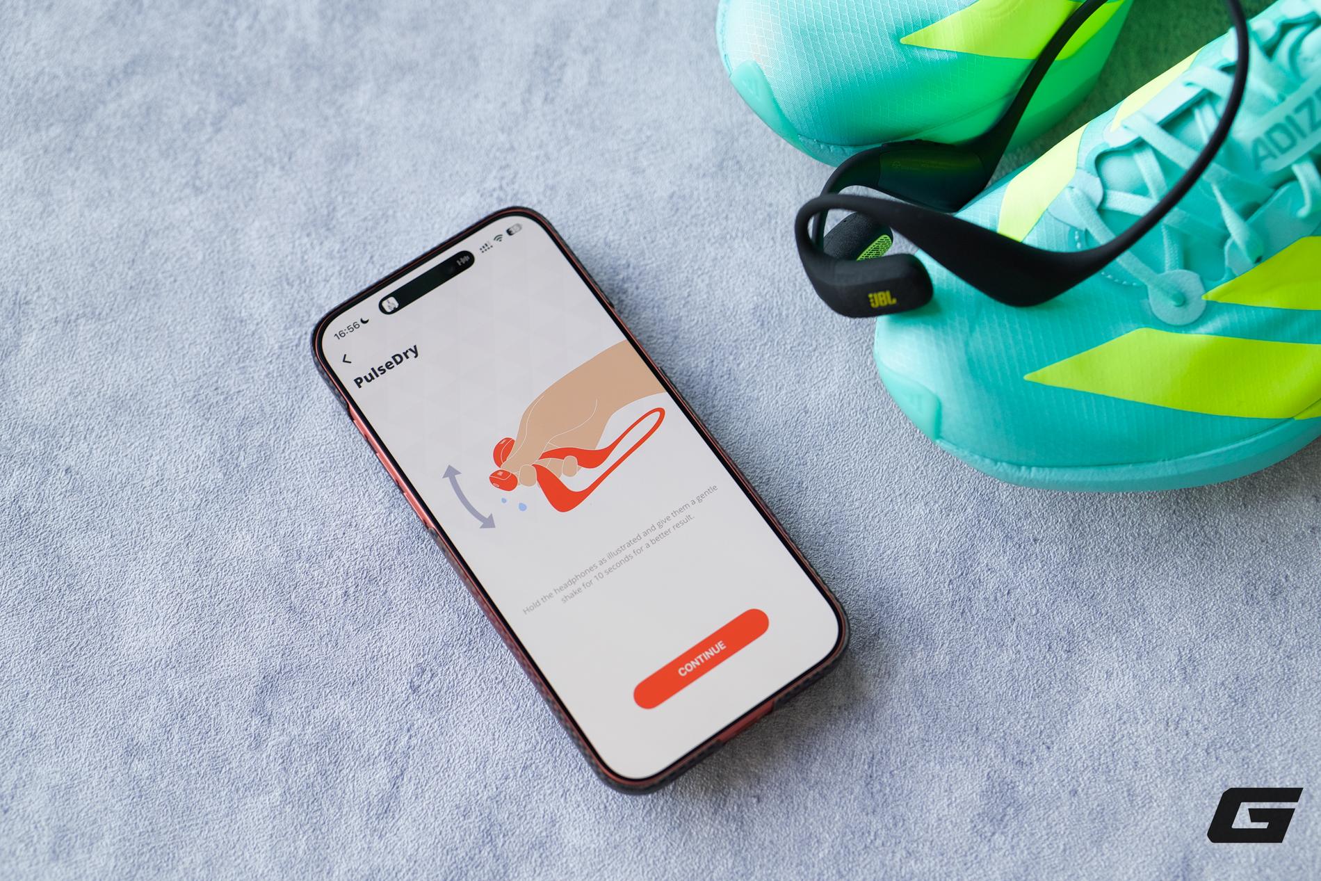 Sau khi kết thúc buổi chạy, thì chúng ta có thể vệ sinh tai nghe dưới vòi nước luôn cho sạch mồ hôi và bụi bẩn, rồi chỉ cần kích hoạt tính năng; lúc này, các rung động liên tục sẽ đánh bật nước và mồ hôi ra khỏi bề mặt cũng như các khe kẽ linh kiện.