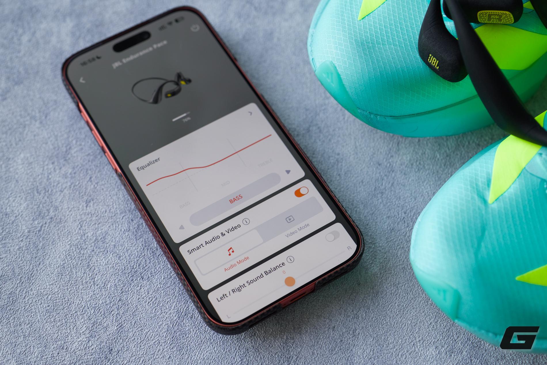 Người dùng có thể tuỳ chỉnh lại EQ để có chất âm vừa ý hơn qua ứng dụng JBL. Đây là một sự đánh đổi có tính toán: chấp nhận hy sinh một chút độ sâu của âm nhạc để đổi lấy sự an toàn, giúp người dùng luôn nhận thức được tiếng xe cộ và môi trường xung quanh.