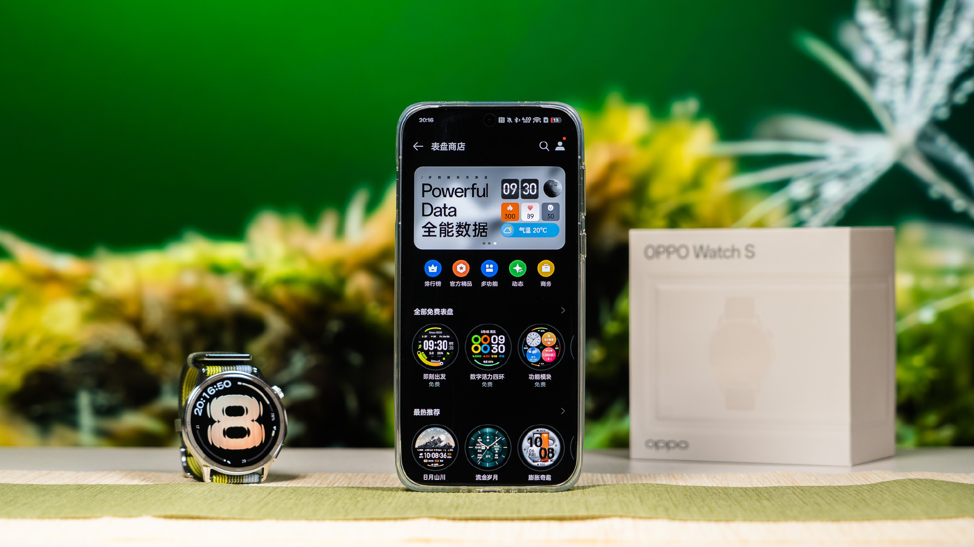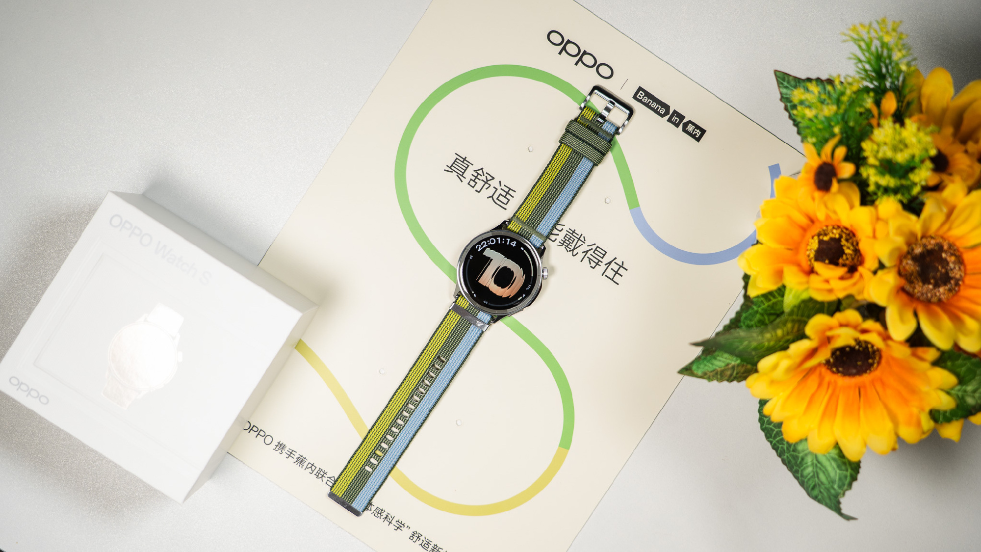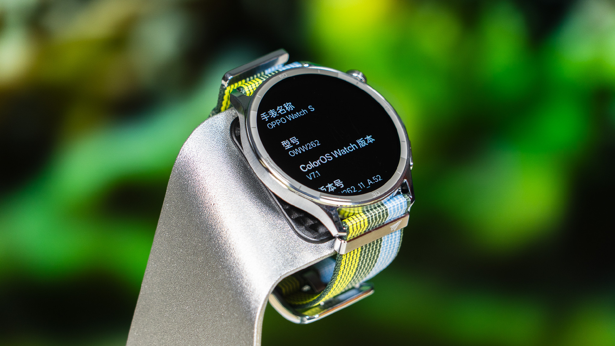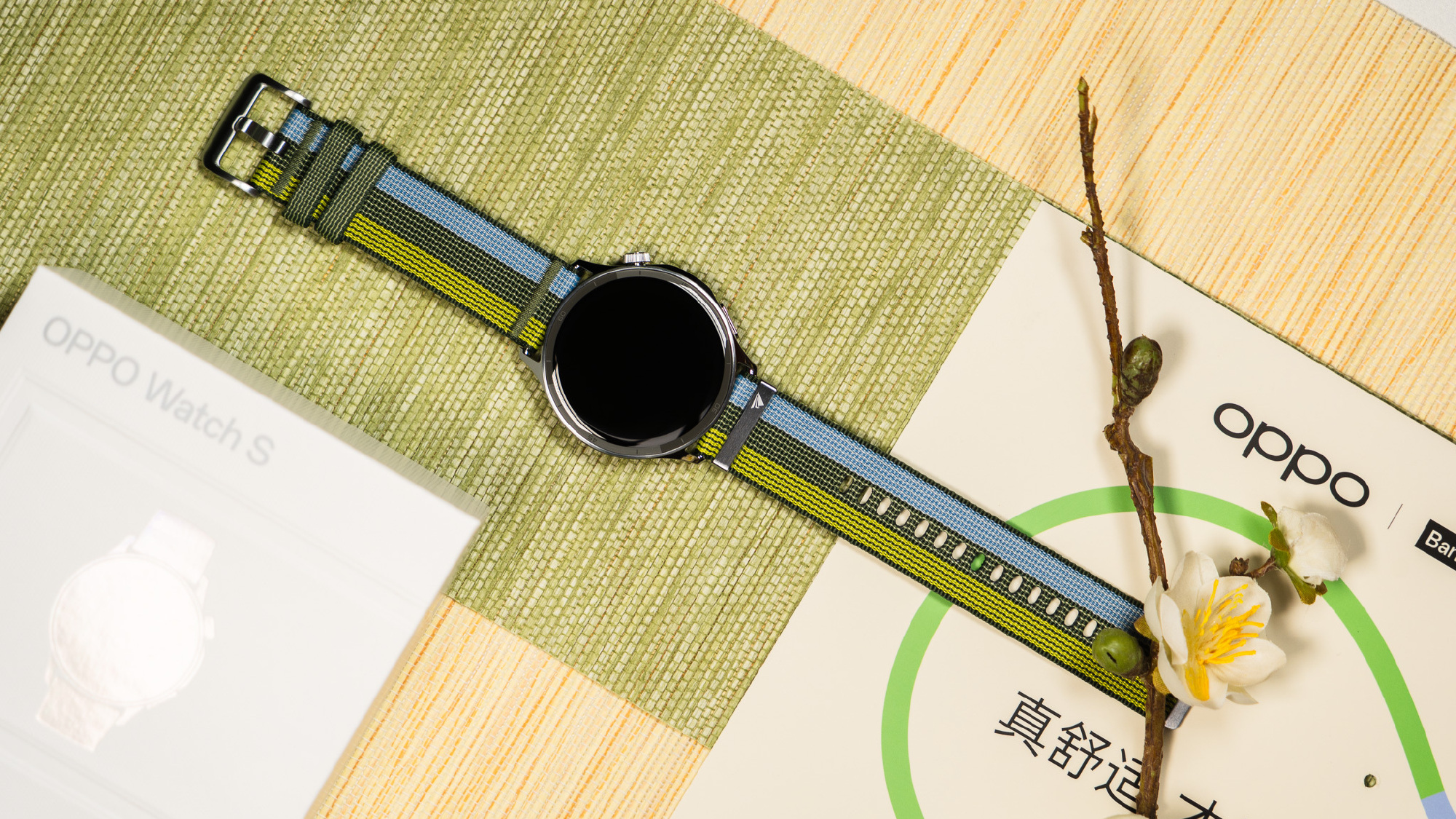 OPPO Watch S sở hữu thân máy chỉ dày 8,9 mm, mỏng hơn cả một cây bút chì. Trọng lượng nhẹ giúp người đeo gần như không cảm nhận được sự tồn tại của nó trên cổ tay, ngay cả khi vận động hoặc đeo khi ngủ. Sản phẩm có ba phiên bản màu sắc gồm "Lục nhịp vận động" với dây vải dệt kháng khuẩn phối ba tông xanh, cùng hai lựa chọn "Bạc nhịp điệu" và "Đen tốc độ" sử dụng dây cao su fluorocarbon.