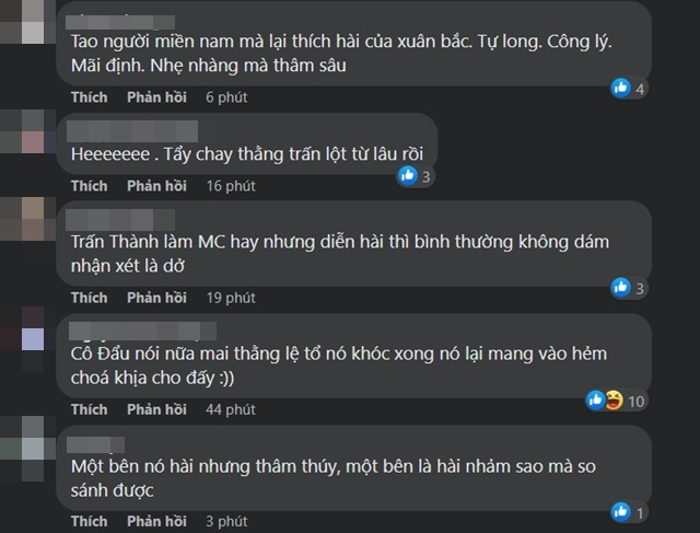 “Tôi người miền Nam, không thích xem hài miền Nam, cũng chẳng xem hài Bắc nhưng Trấn Thành đúng là diễn luyên thuyên mà, đôi lúc vô duyên nữa kìa”.