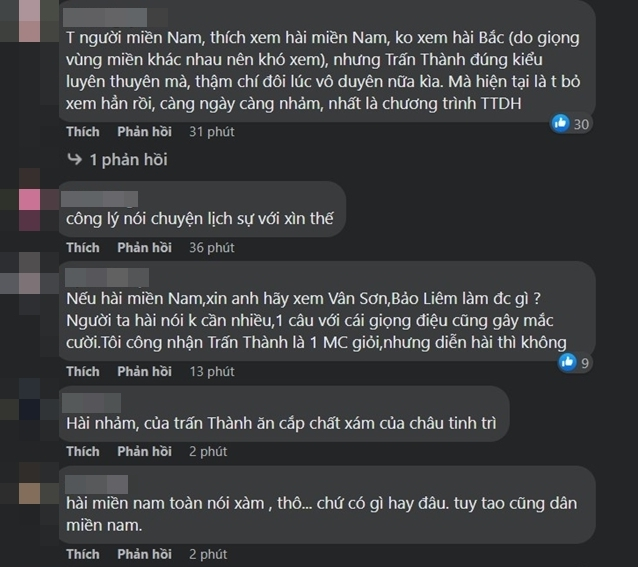 “Xem hài miền Nam hãy xem Vân Sơn, Bảo Liêm. Trấn Thành là 1 MC giỏi nhưng diễn hài thì không”.