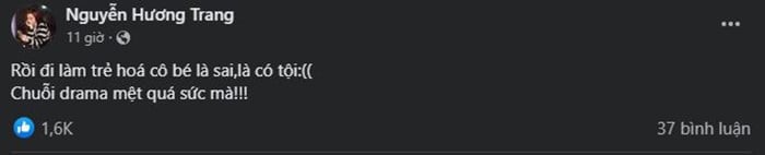 Trước ồn ào trên mạng xã hội, Trang Nemo khẳng định việc "tân trang" không hề sai và bày tỏ sự mệt mỏi với chuỗi "drama" bủa vây thời gian qua. Người đẹp quê Bến Tre nói: "Rồi đi làm trẻ hóa 'cô bé' là sai, là có tội hả? Chuỗi 'drama' mệt quá sức mà!"