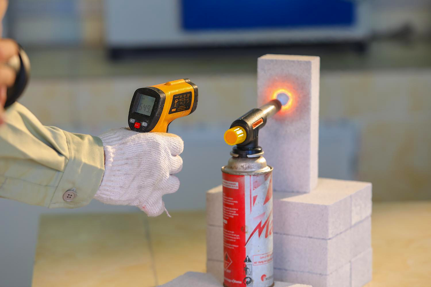 Gạch bê tông khí chưng áp Viglacera trong quá trình thử nghiểm độ bền. Ảnh: Viglacera