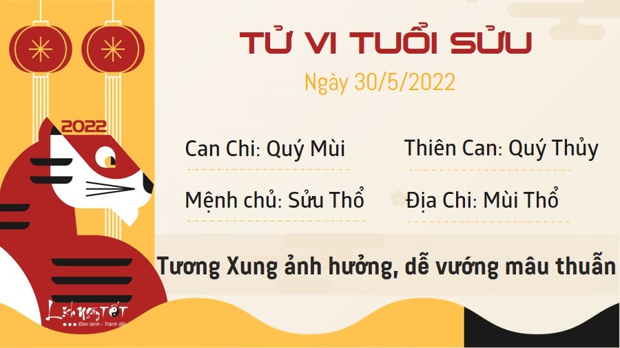Tương Xung tác động, người tuổi Sửu nóng nảy thường xuyên mâu thuẫn với mọi người xung quanh. Bạn cho rằng mình là người hiểu rất rõ vấn đề nên lúc nào cũng muốn người khác phải nghe theo ý kiến của bản thân. Người làm lãnh đạo có thể gây ra bức xúc cho nhân viên trong ngày hôm nay. Có vẻ như bản mệnh đang quá độc đoán, không chịu đặt mình vào vị trí của người khác nên thường đưa ra những quyết định oái oăm, khó thực hiện với tất cả mọi người. Nếu có ý định xuất hành trong ngày hôm nay, bản mệnh nên đi về phía Đông Nam để gặp Hỷ thần hoặc hướng Tây Bắc để gặp Tài Thần. Đây là hai hướng tốt giúp công việc của bạn trở nên suôn sẻ và thuận lợi hơn nhiều.