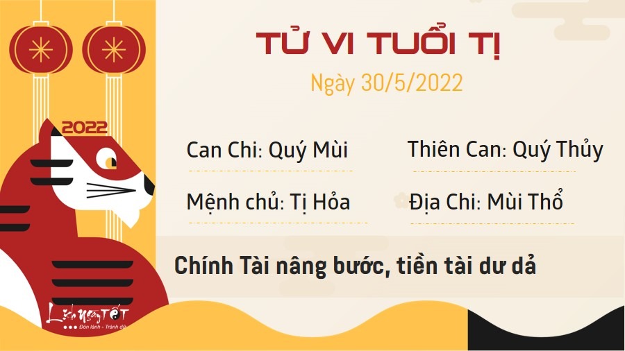 Chính Tài nâng bước, người tuổi Tị có một ngày tiền bạc dư dả. Người làm công ăn lương hoàn thành tốt nhiệm vụ được giao nên dễ nhận được một khoản thưởng nóng triển vọng. Nhờ khoản tiền này, bạn cảm thấy hăng hái và muốn cống hiến hơn. Người làm kinh tế nhận về một khoản lời lãi từ những mối đầu tư trước đó. Ngoài ra, bạn cũng đoán được xu thế của thị trường nên có những bước phát triển đúng đắn. Khách hàng ngày một đông giúp bạn lúc nào cũng bận rộn nhưng dư dả. Hỏa sinh Thổ, quan hệ giữa bản mệnh và người khác giới rất tốt đẹp. Nếu còn độc thân, bạn chẳng thiếu những đối tượng theo đuổi. Bạn nên nghiêm túc với chuyện tình cảm và lắng nghe trái tim mình để có thể phát triển được mối quan hệ bền vững.