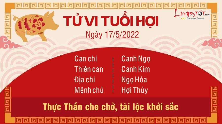 Thực Thần xuất hiện trong vận trình hôm nay của tuổi Hợi báo hiệu vận trình tài lộc có nhiều khởi sắc đáng mừng. Con giáp này biết cách làm những gì để có nguồn thu nhập tốt hơn và giờ là lúc bản mệnh được hưởng thành quả cho những cố gắng của mình. Hãy chi tiêu thông minh và có kế hoạch hợp lý để sau này không phải lo lắng quá nhiều vì vấn đề tiền bạc nữa. Vận trình sự nghiệp có quý nhân nâng đỡ nên công danh cũng theo đó mà khởi phát. Nhìn chung con giáp này sẽ có cơ hội thể hiện được tài năng, tạo tiền đề phát triển cho tương lai, đường thăng tiến cũng nhờ vậy mà mở rộng vô cùng. Tuy nhiên, chuyện tình cảm của con giáp này chưa được suôn sẻ do ngũ hành xung khắc ảnh hưởng. Đôi khi đừng quá so đo trong tình yêu, cứ nghe con tim mách bảo và đưa ra lựa chọn phù hợp cho mình nhé Hợi. Càng suy nghĩ đôi khi sẽ lại càng sai lầm.